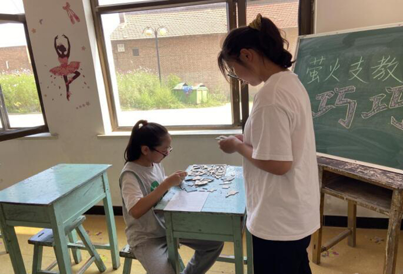 支教团走进灵丘县王庄村永红社区,为近100名留守儿童和困难家庭子女进行义务的暑期课后辅导服务。课程内容除了常规的语数英教学,支教团还精心设计了“巧巧手”“妙笔生画”“快乐星球”等趣味课堂,寓教于乐,既拉近了支教老师和学生的距离,也激起了学生们对大千世界的好奇和期盼。