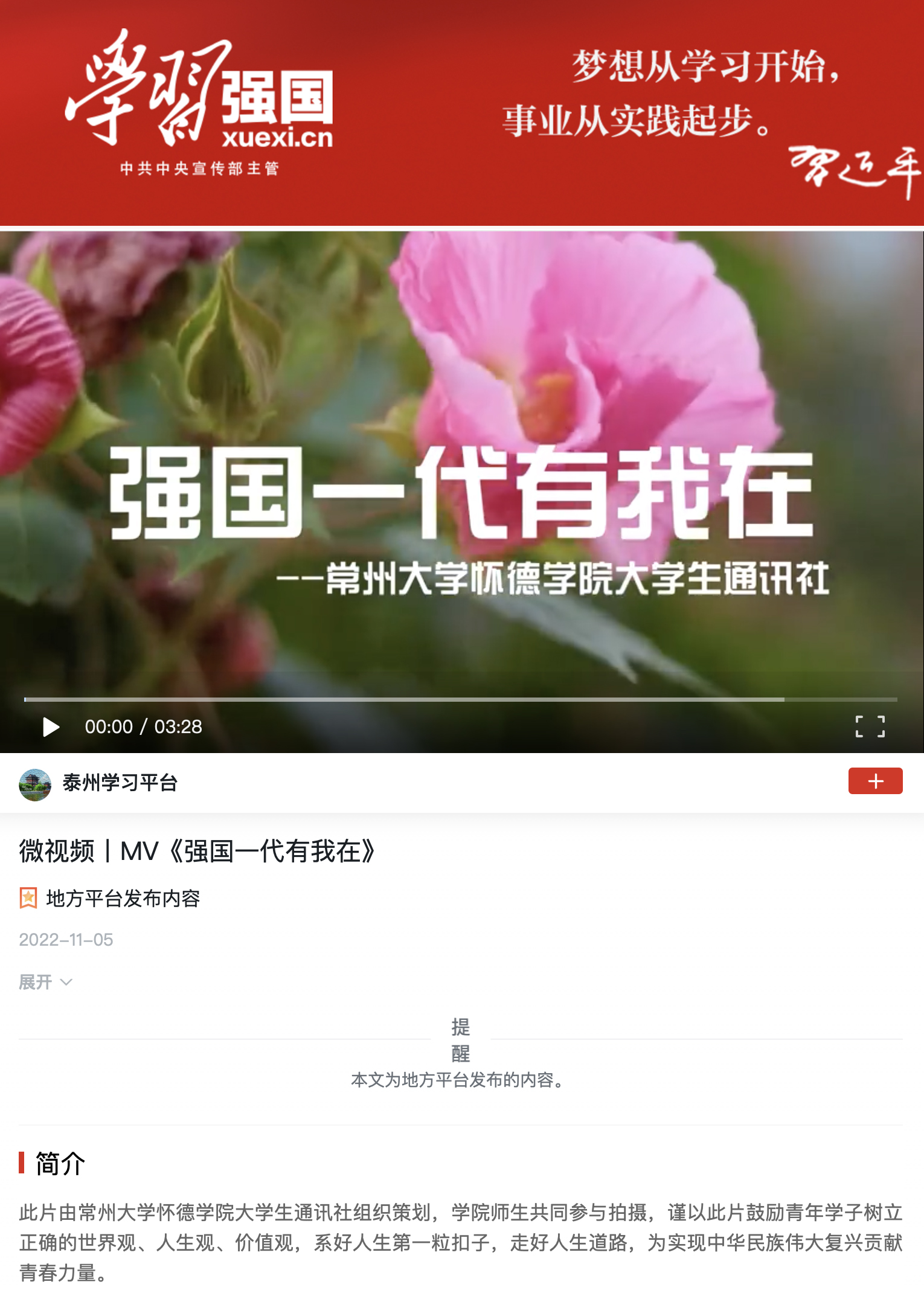 学习强国微视频:https://article.xuexi.cn/articles/index.html?art_id=269030759853814691&t=1667625188263&showmenu=false&cdn=https%3