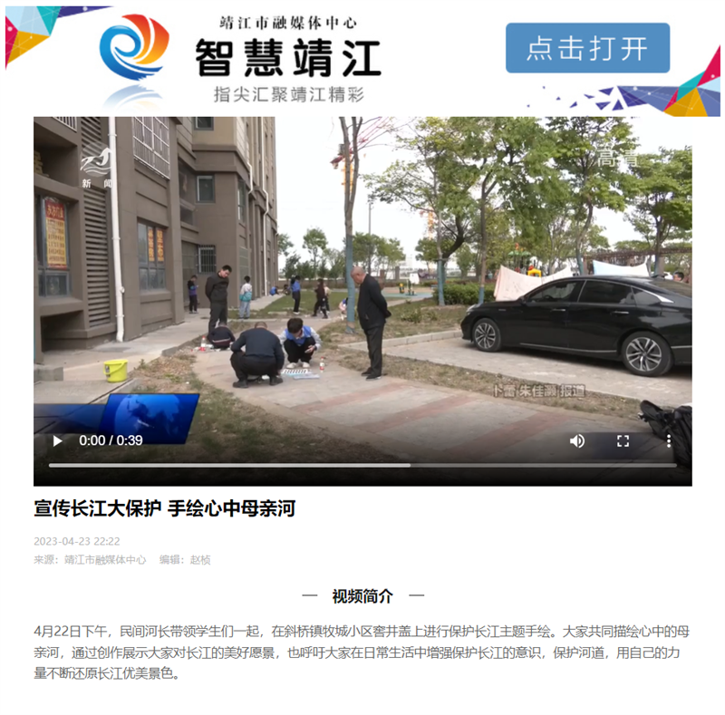 4月22日下午,民间河长带领学生们一起,在斜桥镇牧城小区窖井盖上进行保护长江主题手绘。大家共同描绘心中的母亲河,通过创作展示大家对长江的美好愿景,也呼吁大家在日常生活中增强保护长江的意识,保护河道,用自己的力量不断还原长江优美景色。