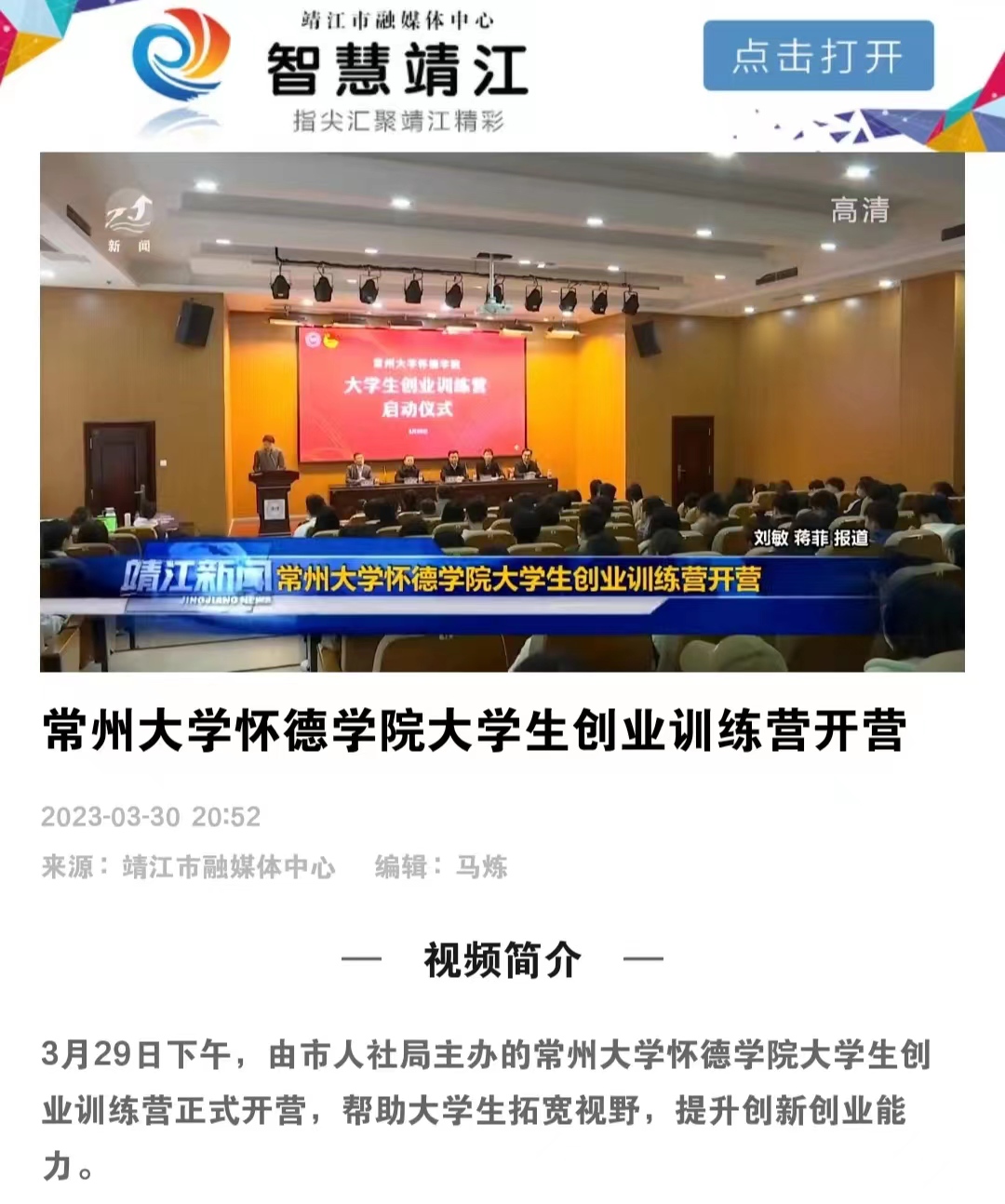 3月29日下午,由市人社局主办的常州大学怀德学院大学生创业训练营正式开营,帮助大学生拓宽视野,提升创新创业能力。