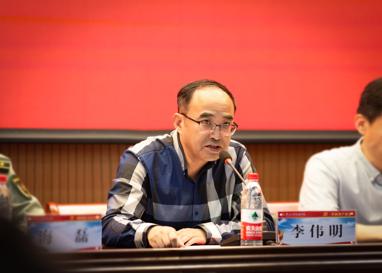 李伟明代表学院对海磊一行的到来表示欢迎,对市人武部给予学院国防教育工作的支持表示感谢,并简要介绍了学院的发展历史、学科分布,以及近年来在国防教育创新、征兵工作推进、服务地方社会经济发展等方面的办学成效,同时强调学院各部门应以此为契机,深入学习贯彻党的二十大精神,按照上级部门征兵工作要求,高标准高质量做好优质兵员储备基地建设。