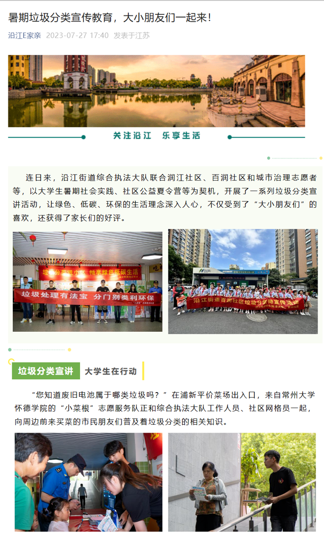 【沿江E家亲】暑期垃圾分类宣传教育,大小朋友们一起来!