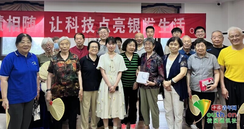 图为志愿者与老人们的合影留念。中国青年网通讯员 姜卜凡 供图