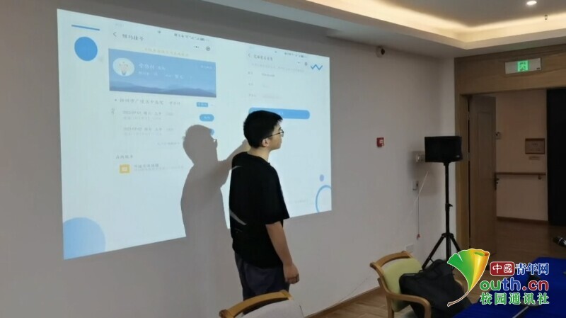图为志愿者讲解如何使用小程序“微医”进行网上挂号。中国青年网通讯员 姜卜凡 供图