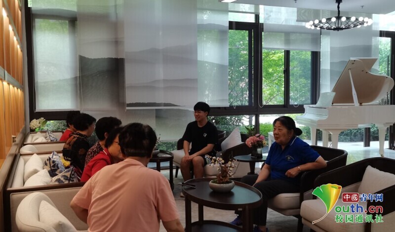 图为志愿者与老人们一起聊天,询问老人近期身体状况等。中国青年网通讯员 姜卜凡 供图