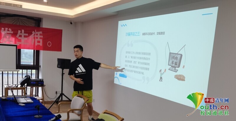 图为志愿者讲解电信诈骗的基本形式以及预防电信诈骗的措施。中国青年网通讯员 姜卜凡 供图