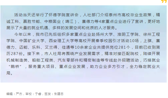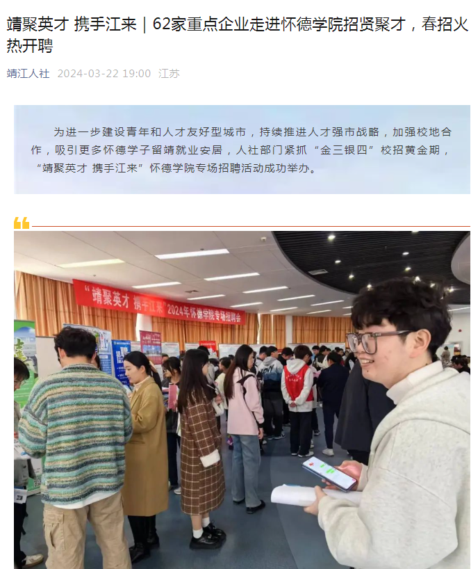 【靖江人社】靖聚英才 携手江来|62家重点企业走进怀德学院招贤聚才,春招火热开聘