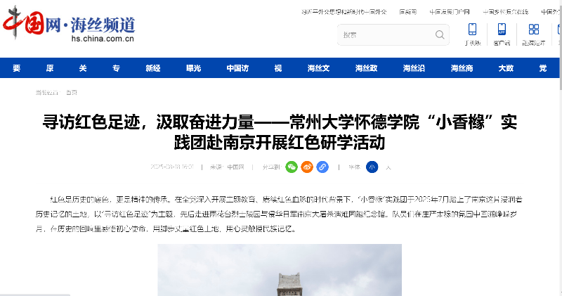 红色是历史的底色,更是精神的传承。在全党深入开展主题教育、赓续红色血脉的时代背景下,“小香橼”实践团于2025年7月踏上了南京这片浸润着历史记忆的土地,以“寻访红色足迹”为主题,先后走进雨花台烈士陵园与侵华日军南京大屠杀遇难同胞纪念馆。队员们在庄严肃穆的氛围中回溯峥嵘岁月,在历史的回响里感悟初心使命,用脚步丈量红色土地,用心灵触摸民族记忆。