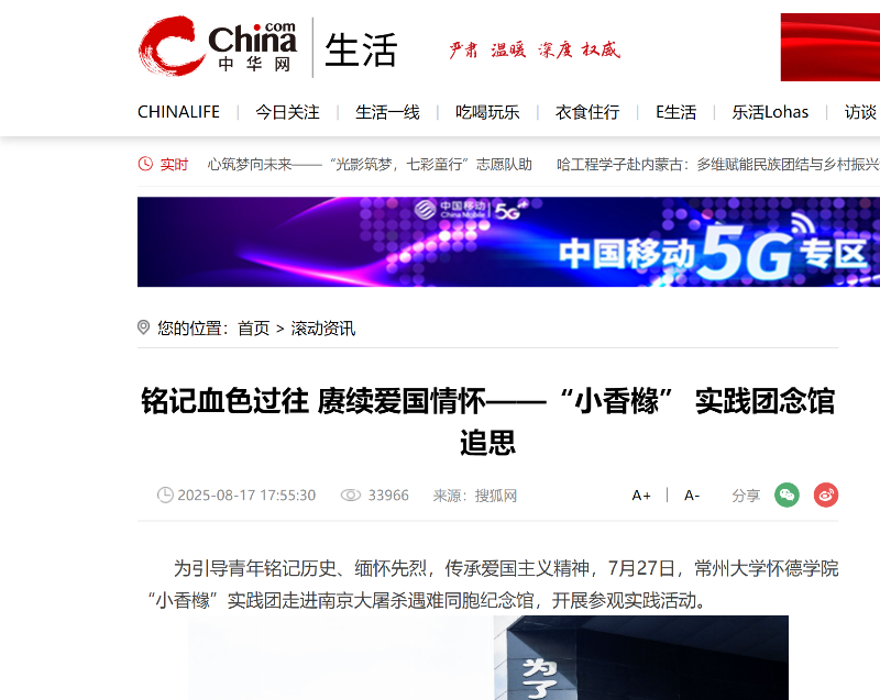 为引导青年铭记历史、缅怀先烈,传承爱国主义精神,7月27日,常州大学怀德学院“小香橼”实践团走进南京大屠杀遇难同胞纪念馆,开展参观实践活动。