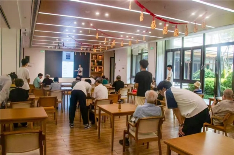 图为活动现场,志愿者们正耐心地为老人们进行抖音使用的实操指导。有的志愿者俯身贴近老人,仔细查看老人手机上的抖音界面,手把手地教老人如何调整拍摄角度、添加特效;有的志愿者则在一旁解答老人提出的各种疑问,现场学习氛围十分浓厚。老人们专注于手中的手机,认真尝试每一个新学到的操作,对用抖音记录生活充满了期待,这场活动切实为老人们打开了一扇接触新媒体、丰富晚年生活的窗口。