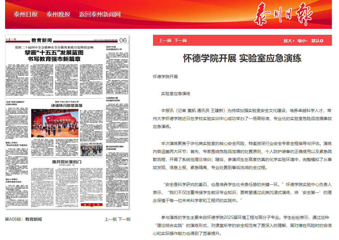 参与演练的学生主要来自怀德学院2025届环境工程与高分子专业。学生纷纷表示,通过这种“理论结合实践”的演练形式,对课堂所学的安全规范有了更深入的理解,面对潜在风险时的自信心和实际操作能力也得到了显著提升。