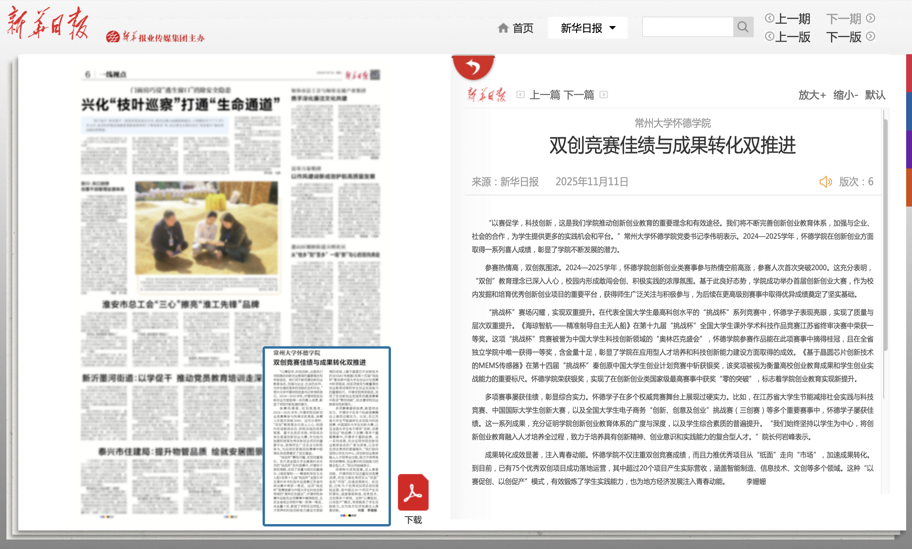 新华日报:https://xh.xhby.net/pc/layout/202511/11/node_6.html#content_1501310