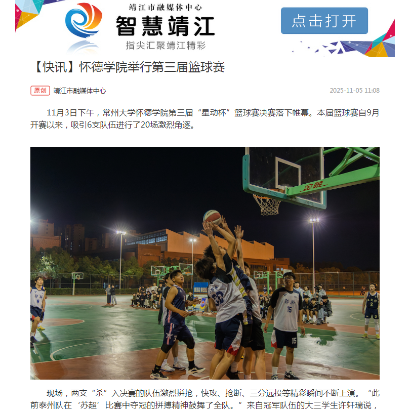 现场,两支“杀”入决赛的队伍激烈拼抢,快攻、抢断、三分远投等精彩瞬间不断上演。“此前泰州队在‘苏超’比赛中夺冠的拼搏精神鼓舞了全队。”来自冠军队伍的大三学生许轩瑞说,“今天站在决赛场上既忐忑又兴奋,每一分我们都要拼尽全力。”