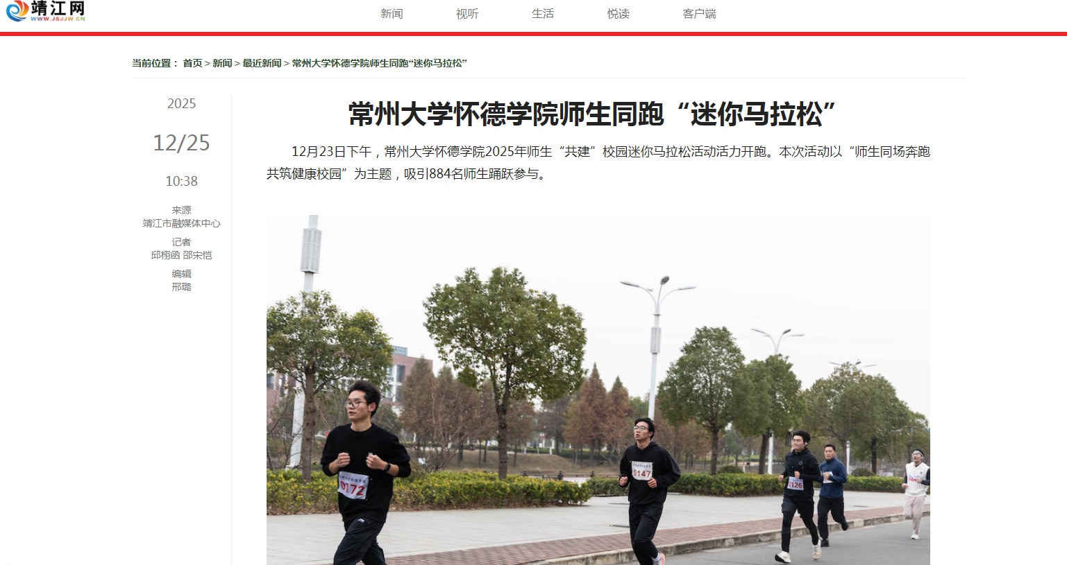 12月23日下午,常州大学怀德学院2025年师生“共建”校园迷你马拉松活动活力开跑。本次活动以“师生同场奔跑 共筑健康校园”为主题,吸引884名师生踊跃参与。